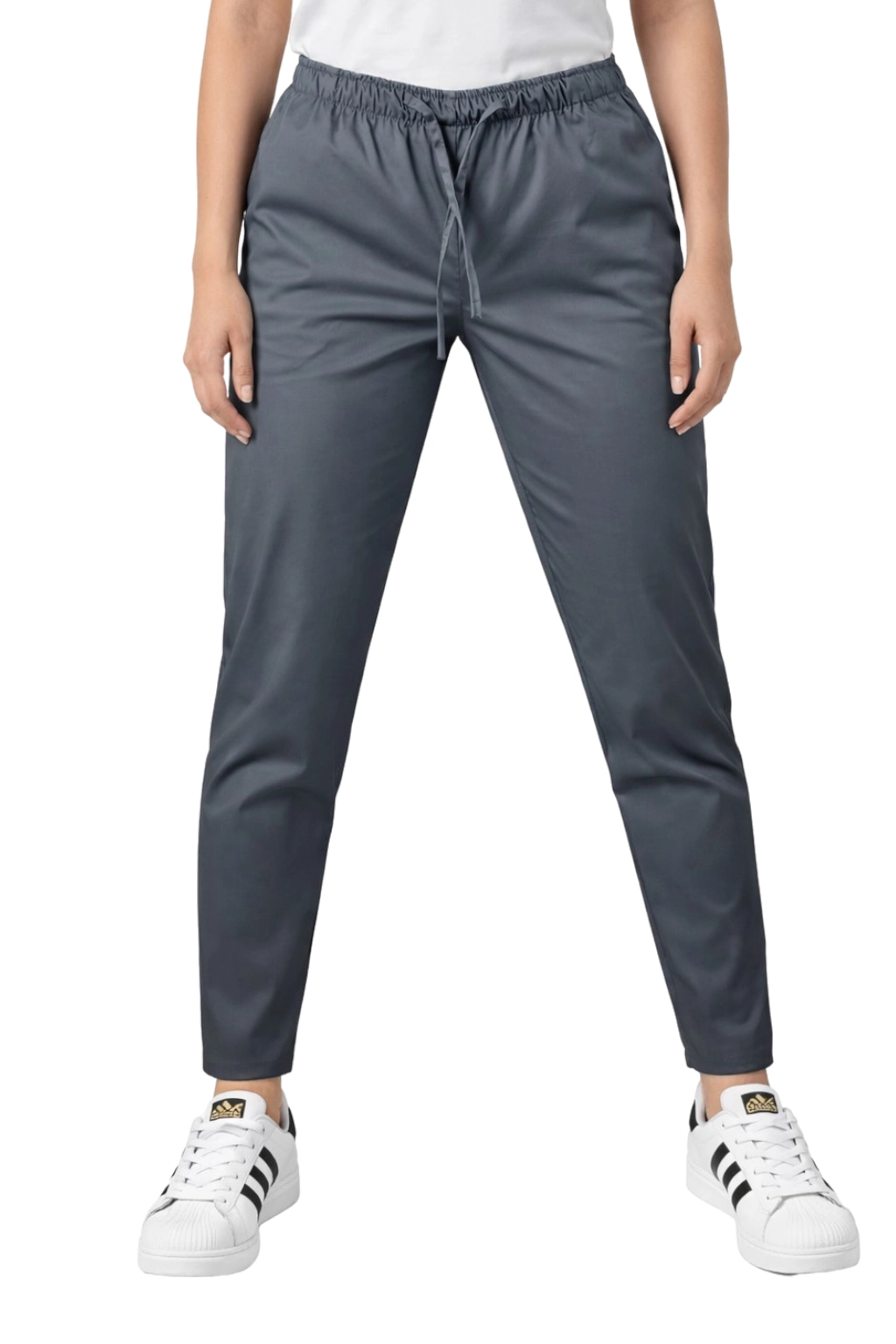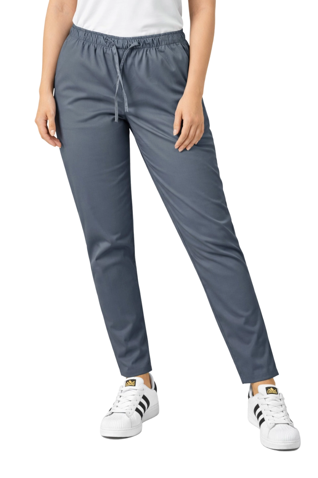 Model odlikuje rahlo zožene hlačnice in trak z vrvico, ki zagotavljata idealno prileganje in svobodo gibanja. Dva praktična stranska žepa omogočata shranjevanje nujno potrebne opreme - od pisal do medicinske opreme. Univerzalna siva barva pomeni, da se hlače odlično ujemajo z barvnimi medicinskimi bluzami, kar omogoča ustvarjanje skladnih in sodobnih kompletov.