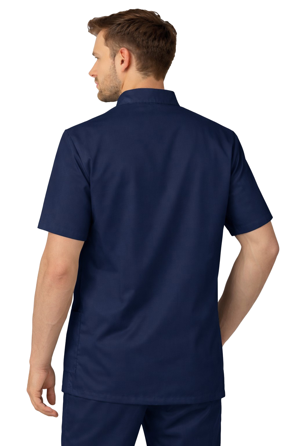 Moška medicinska bluza v mornarsko modri barvi z ovratnikom je eleganten in funkcionalen kos medicinskega oblačila, ustvarjen za zdravnike, zobozdravnike, interniste, veterinarje, rehabilitacijske terapevte, pa tudi študente medicinskih smeri. Njena klasična kroja v kombinaciji z moderno izdelavo zagotavlja profesionalen videz in udobje nošenja skozi celoten delovni dan.