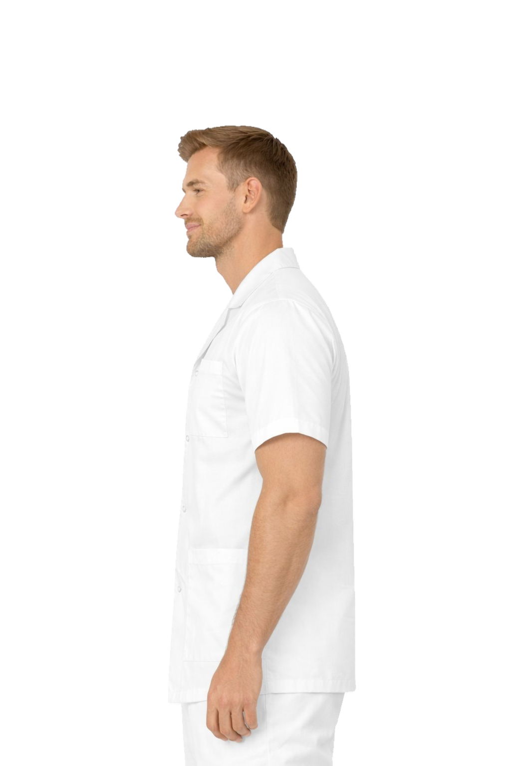 Moška medicinska bluza z ovratnikom in kratkimi rokavi, bela barva