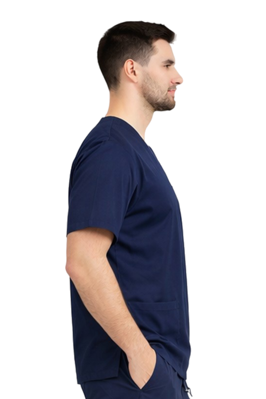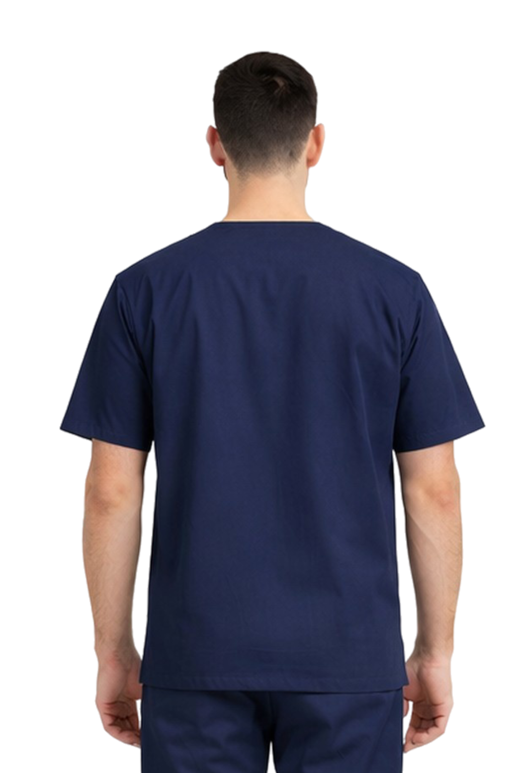 Mornarsko modra moška medicinska srajca je idealna izbira za zdravnike, medicinske sestre, fizioterapevte in moške, ki delajo v lepotni industriji – v spa, wellness centrih in klinikah estetske medicine. Posebej zasnovana za kirurge in instrumentarje, zagotavlja popolno udobje in varnost - brez nepotrebnih trakov ali pasov, ki bi lahko ovirali delo.