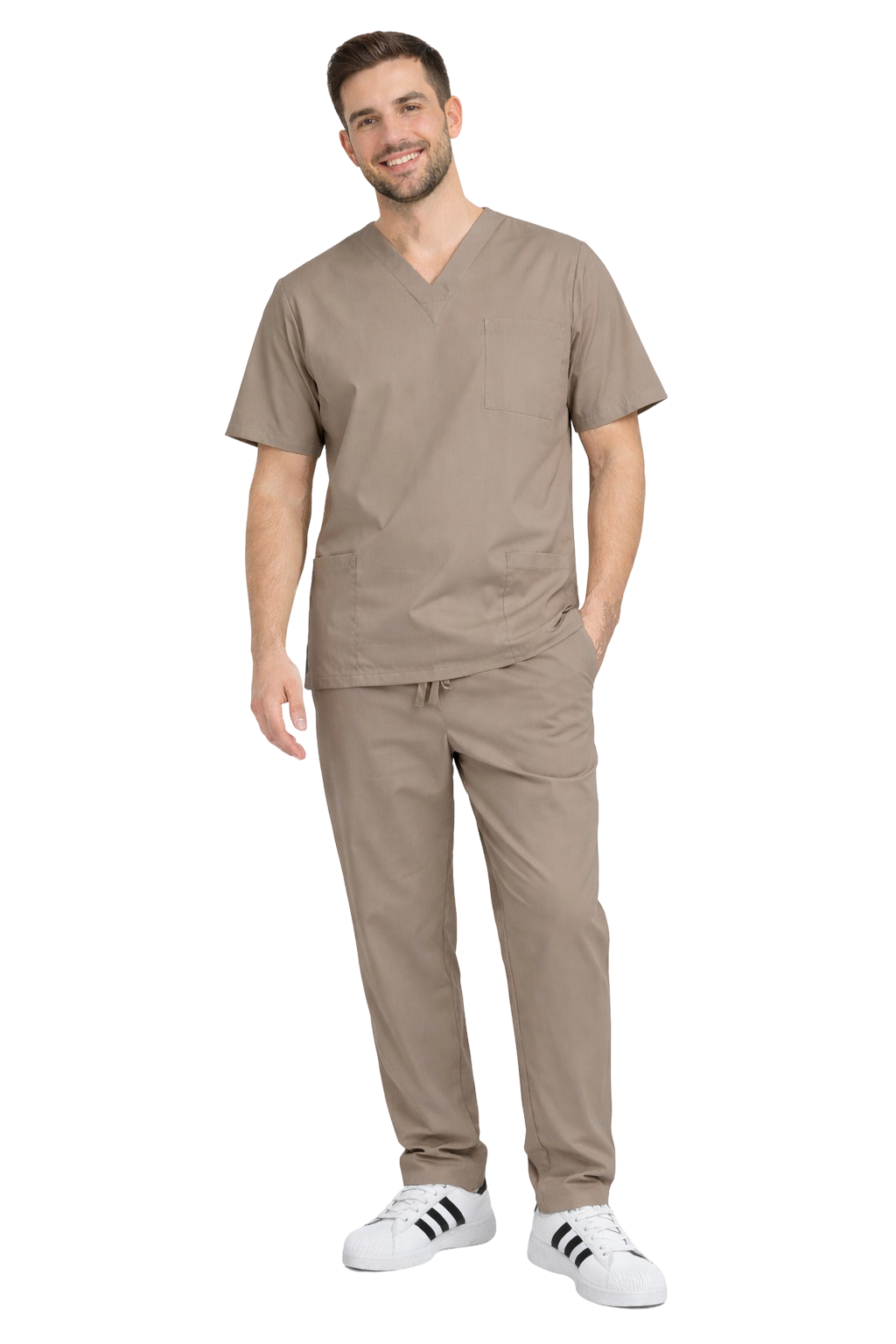 Sodoben moški zdravstveni set CLINIC SLIM v kapučino barvi je idealna kombinacija profesionalnega videza, funkcionalnosti in udobja. Izdelan je z mislijo na zdravnike, medicinske sestre, fizioterapevte in strokovnjake v lepotni industriji, zagotavlja udobje skozi ves delovni dan - ne glede na intenzivnost obveznosti.