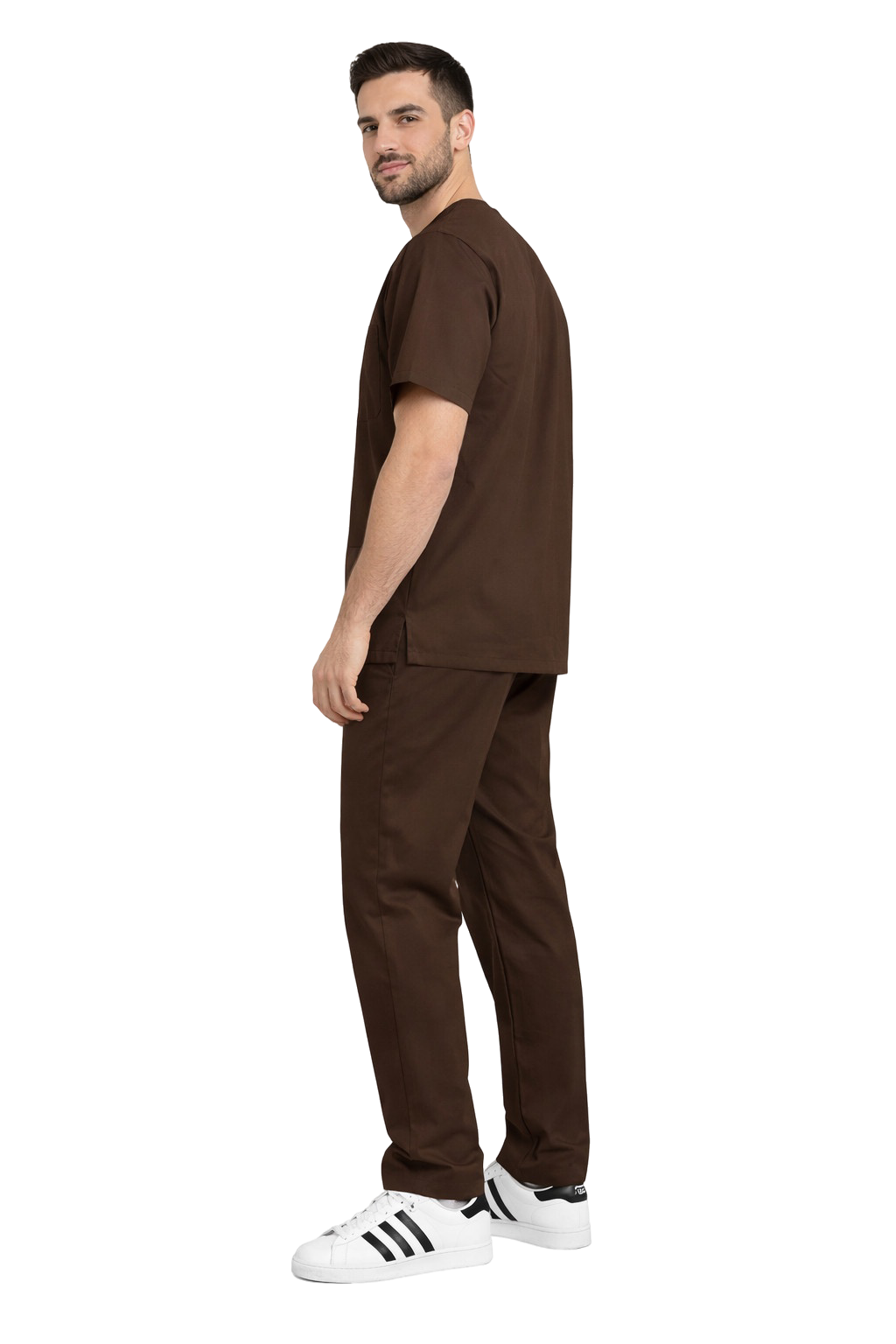 Moška medicinska garnitura CLINIC SLIM v čokoladni barvi – eleganca in udobje pri delu