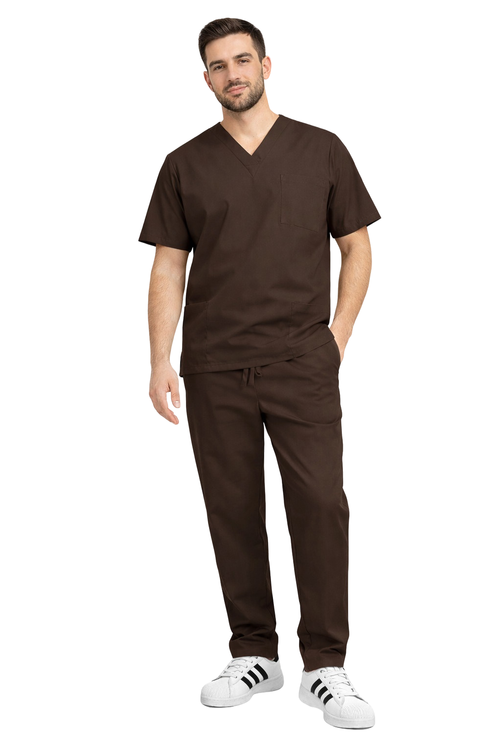 Sodobna moška medicinska garnitura CLINIC SLIM v čokoladni barvi je popolna kombinacija profesionalnega videza, funkcionalnosti in udobja. Ustvarjena je bila z mislijo na zdravnike, medicinske sestre, fizioterapevte in strokovnjake s področja lepote, zagotavlja udobje skozi cel delovni dan - ne glede na intenzivnost obveznosti.