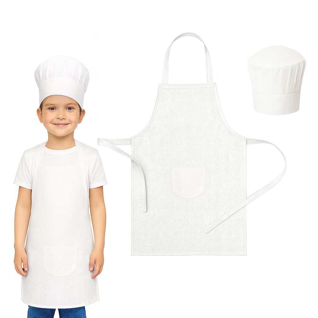 Set Malega Kuharja – Pekaška Obleka in Kuharska Kapa za Otroke Bela