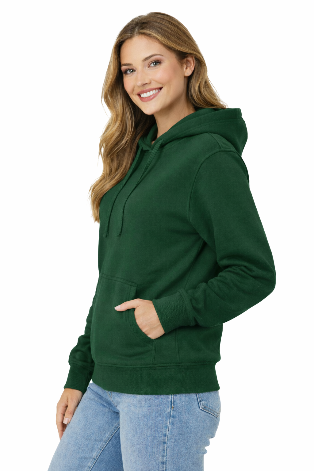 Ženska jopica s kapuco in žepom barve zelene steklenice - klasika v ženski izdaji