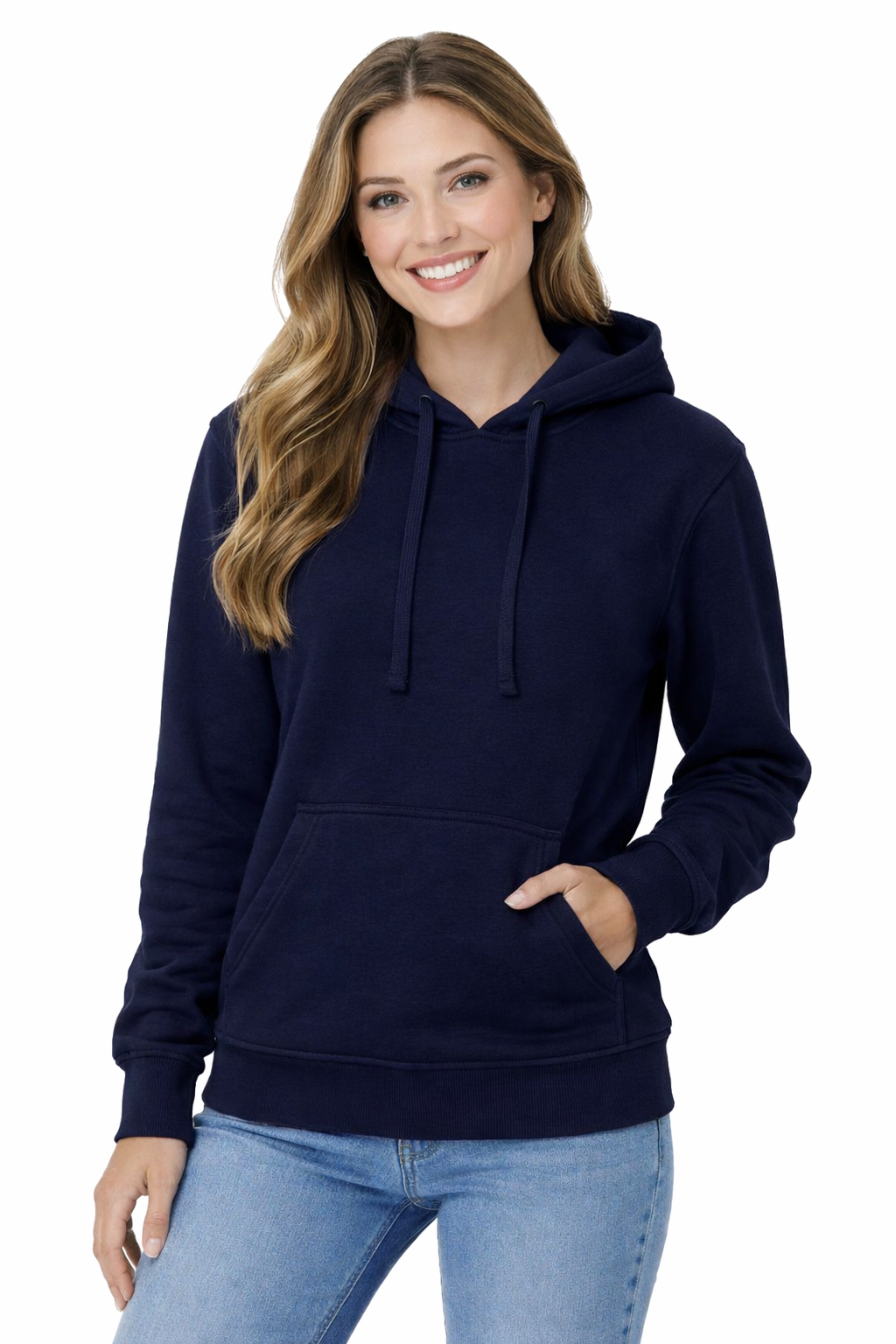 Ženska jopica s kapuco in žepom, mornarsko modra – klasika v ženski izdaji