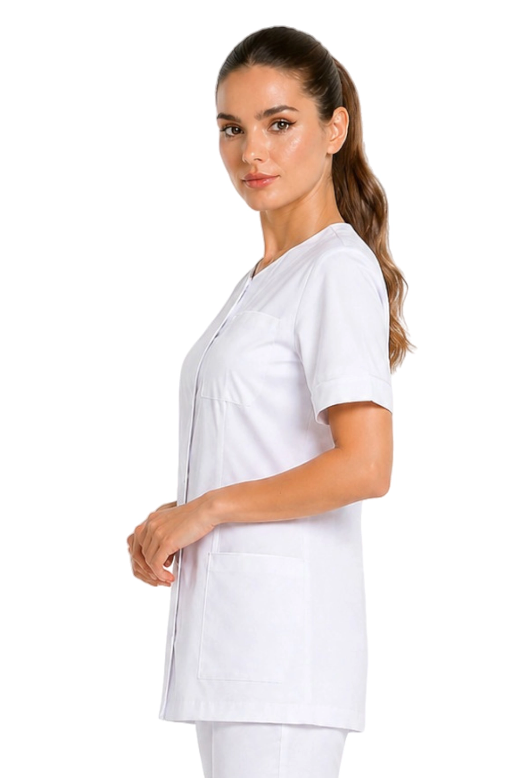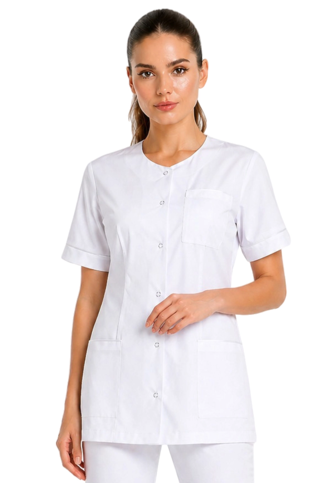 Predstavljamo ženski medicinski jopič, ki je idealen za zdravnice, medicinske sestre, farmacevtke in specialistke v kozmetični industriji, vključno z delavci v spa, wellness centru in klinike estetske medicine. Naš bel medicinski halja združuje sodoben dizajn z vrhunsko kakovostjo izdelave.